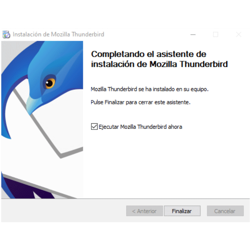6.- Con un clic dejas marcado «Ejecutar Mozilla Thunderbird»