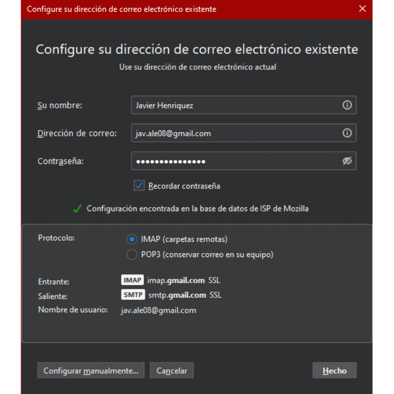 9.- Y listo ya tienes tu correo agregado al programa.